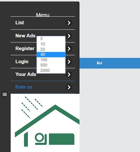dove se provate ad aprire il menu, e fare click tra "list" e "new ads" noterete che appaiono le combo che sono sotto