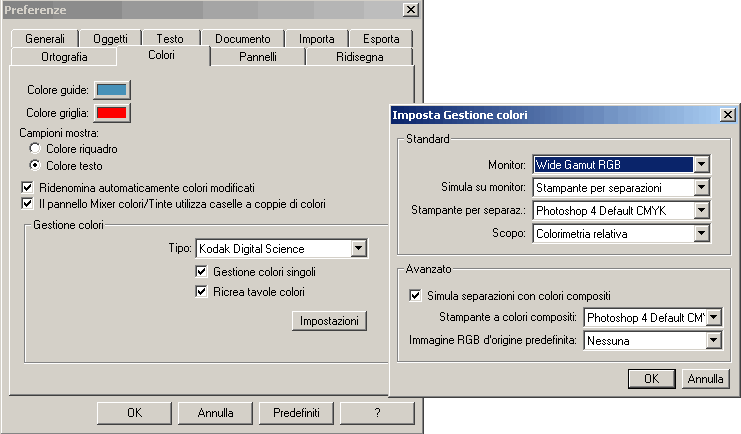 Vorrei sapere le preferenze delle impostazioni dei colori su windows per vedere al meglio le immagini importate all'interno del programma freehand.