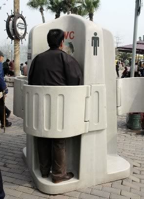 qui a londra durante i finesettimana montano i cessi, praticamente sono delle strutture di plastica dove puoi far pipi' in uno dei 4 scomparti, e vengono messi sopra i tombini, quindi tutto va nel tombino, ed e' facilissimo da montare, e' una struttura unica. Ah sono "aperti", quindi tutti vedono che stai facendo pipi', ma la gente non si fa tanti problemi.