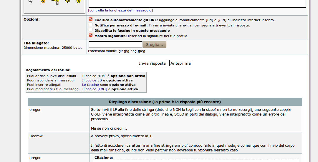 Per riallacciarmi al topic precedente, ho seguito il consiglio di oregon, di accodare i caratteri return/linefeed alla fine della stringa, senza utilizzare un ulteriore invio del buffer "sendbuf0".