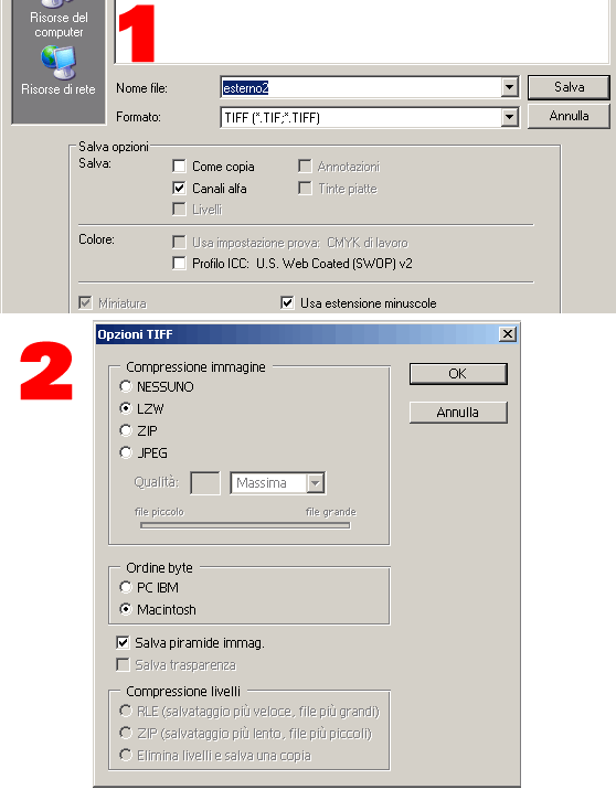 Ciao a tutti, devo realizzare un'immagine per la stampa in cmyk con photoshop, realizzo questa immagine con un pc però lo stampatore ha un macintosh, al momennto del salvataggio photoshop mi chiede in quale maniera vorrei l'ordine byte dandomi due opzioni PC ibm o macintosh.... che seleziono?