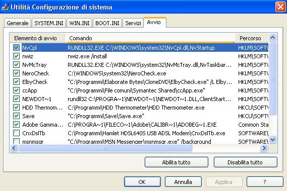 hai una selva di processi in avvio automatico e , pur non essendo strettamente necessario, io toglierei il segno di spunta da tutti.